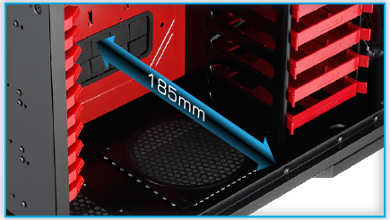 Поддерживаются мощные системы охлаждения процессоров высотой до 185 мм.