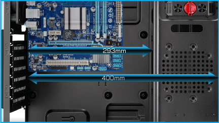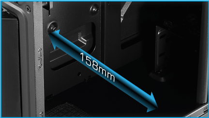 Поддерживаются мощные системы охлаждения для процессоров высотой до 158 мм. Поддерживаются high-end видеокарты длиной до 400 мм.