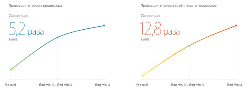 Процессор A8 обрабатывает графику на 60 процентов быстрее, чем A7. Картинка, ранее доступная лишь на настольных компьютерах и игровых консолях, теперь по плечу и iPad mini 4. А игры со сложной графикой и приложения для обработки видео превосходно работают и потрясающе выглядят на дисплее Retina.