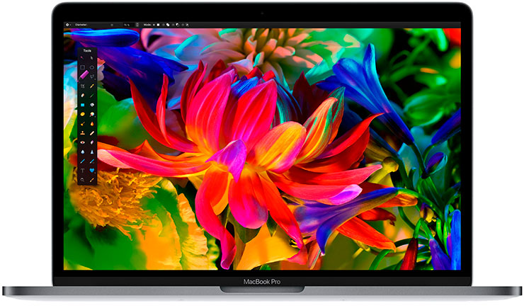 Теперь MacBook Pro поддерживает цветовое пространство P3 — вам доступно на 25 процентов больше цветов по сравнению со стандартной палитрой RGB, особенно в зелёном и красном спектрах.