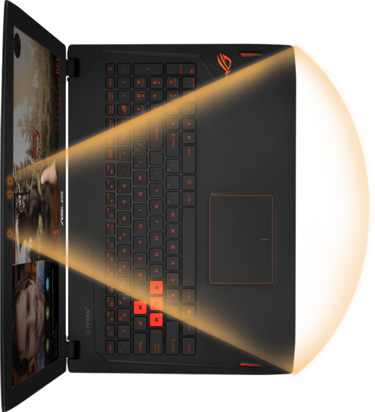 Клавиатура ноутбука ROG Strix GL502 оптимизирована специально для геймеров, поэтому группа клавиш WASD, традиционно используемая для навигации в игре, ярко выделена. Прочная и эргономичная, эта клавиатура оснащается подсветкой красного цвета, которая позволит с комфортом играть даже ночью.