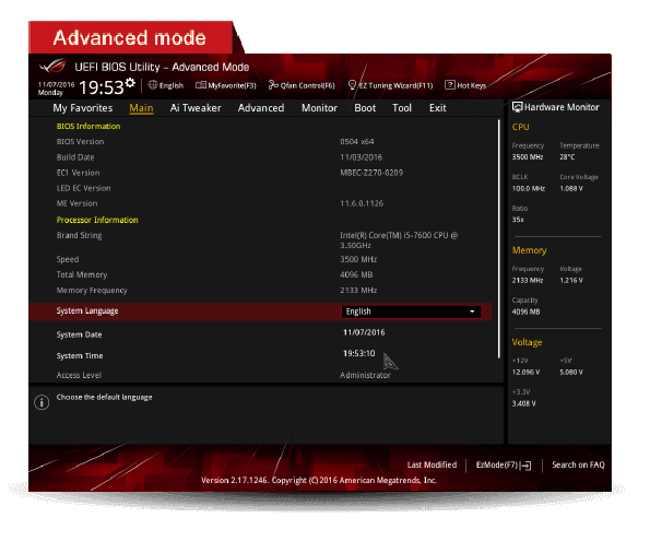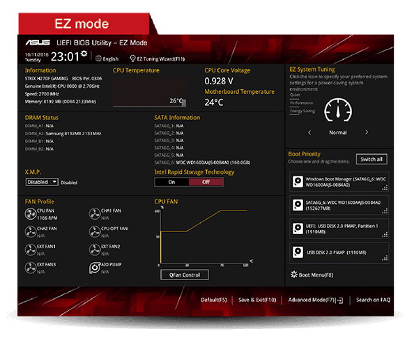 В отличие от традиционных BIOS-систем ASUS UEFI BIOS обладает графическим интерфейсом с поддержкой мыши. Он имеет режимы для новичков и энтузиастов.