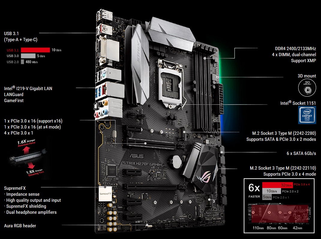 * Характеристики и комплектация Asus Strix H270F Gaming могут изменяться производителем без уведомления. Интернет магазин не несет ответственности за частичное несоответствие характеристик, указанных на нашем сайте, с действительными. Просьба уточнять характеристики и комплектацию на официальном сайте производителя или в инструкции.