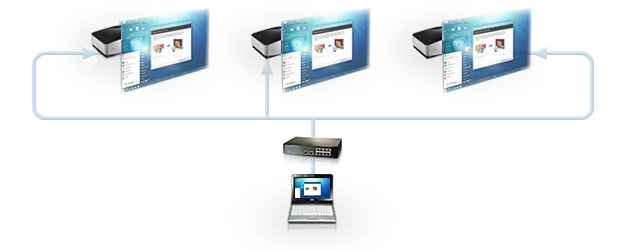 Теперь можно двигаться по аудитории более свободно и не беспокоится о возникновении теней на экране.Удаленное управление и контроль за проекторами.