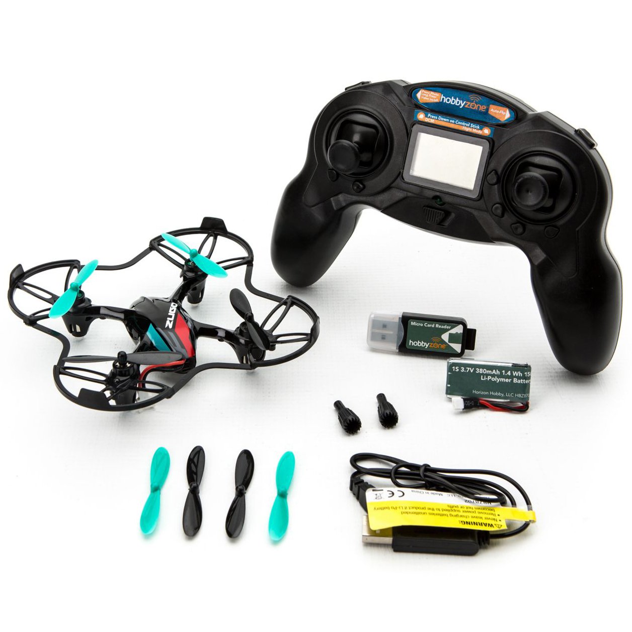 Пилотирование модели подарит вам массу впечатлений и вызовет самые положительные эмоции. Сам полет, с видом от первого лица, можно запечатлеть с помощью встроенной HD видеокамеры. Разрешительная способность в 2 Мп. позволит делать снимки хорошего качества. Видео ролики в разрешении 720р порадуют своей четкостью и приятными воспоминаниями об увлекательном отдыхе. Весь контент сохраняется на карту памяти, которая уже идет в комплекте. Производитель HobbyZone также добавил в комплект USB картридер. С его помощью можно подключить флешку к компьютеру для просмотра информации. Технические и аэродинамические характеристики квадрокоптера, позволяют пилоту выполнять сложные фигуры пилотажа. Четыре мощных двигателя позволяют модели быстро набрать высоту и увеличивать скорость, а также активно противодействовать сильным порывам ветра, это единственная модель такого размера, которая может агрессивно летать даже при довольно сильном ветре.