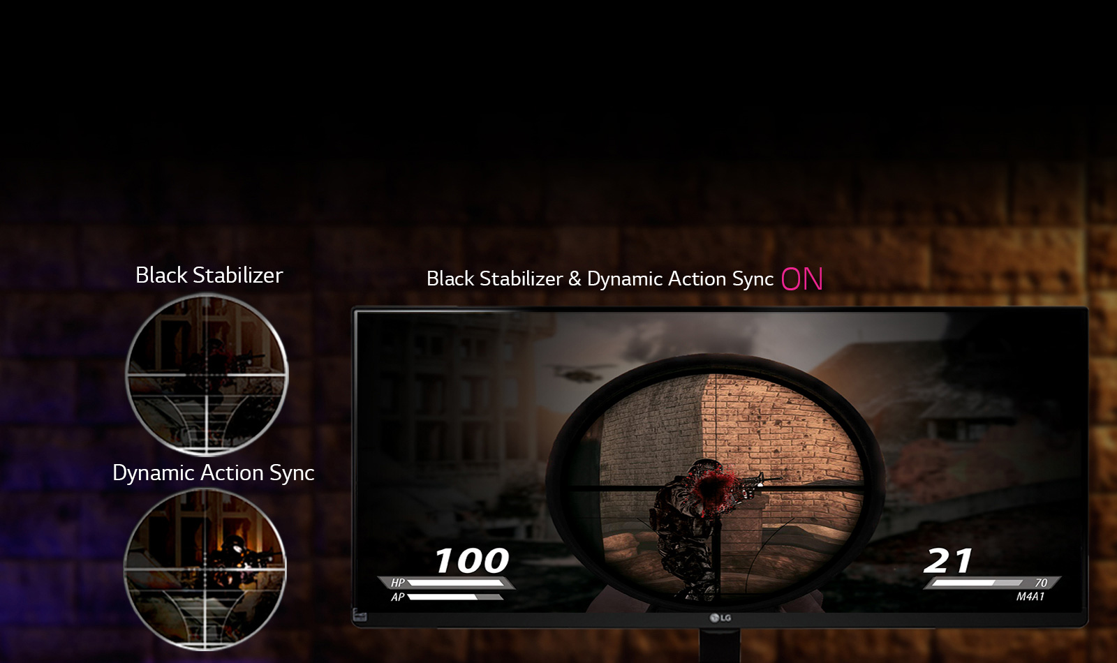 Функция стабилизации черного цвета (Black Stabilizer) особенно удобна для обнаружения объектов, в том числе врагов, скрывающихся в темных областях. Функция динамической синхронизации действий (Dynamic Action Sync) позволяет быстрее атаковать врагов и уменьшить время задержек.