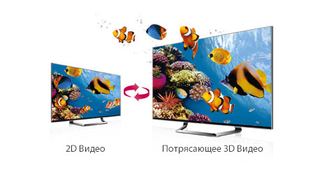 С помощью функции преобразования обычного изображения в 3D вы можете насладиться просмотром фильмов и телепередач в новом качестве. Придайте реалистичный объём любимым актёрам и телеведущим простым нажатием кнопки пульта
