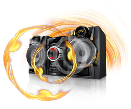 Дополните вашу мини-систему функцией Samsung Giga Sound Blast. Благодаря функции Giga Sound Blast, вы улучшите качество звука вашей мини-системы. Теперь вы можете в два раза увеличить громкость и качество передачи низких частот, так что у гостей останутся самые незабываемые впечатления от вашей вечеринки.