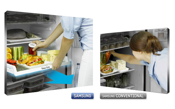 Холодильное отделение оснащено полками из ударопрочного стекла, а так же в нем есть ящик для фруктов и овощей, зона сохранения свежести, полка для яиц, выдвижная полка, ящик Multi Storage Box. А морозильная камера способна за сутки заморозить до 12 кг продуктов.