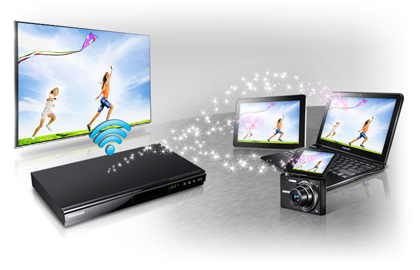 Функция Samsung AllShare Play обеспечивает беспроводный доступ, загрузку контента с любого совместимого устройства, например, ПК или мобильного устройства в вашу домашнюю систему развлечений Samsung. Это означает, что вы можете поделиться видео, фотоснимками, видео и музыкой через одно устройство. Теперь, благодаря возможности хранить ваш контент в Интернете, вы можете получить к нему доступ с любого устройства, даже если вы находитесь вне дома.