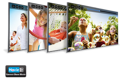 Благодаря технологии ConnectShare Movie вы просто может вставить свой USB накопитель или жесткий диск в USB разъем домашней системы развлечений и наслаждаться прослушиванием или просмотром записанного на нем контента. Функция ConnectShare Movie очень удобна, поскольку позволяет просматривать на большом экране телевизора любой мультимедийный контент, хранившийся у вас на телефоне, цифровой фото- или видеокамере или компьютере. Воспроизводите музыку непосредственно через акустическую систему домашней системы развлечений или смотрите фильмы или фотоснимки на экране телевизора.
