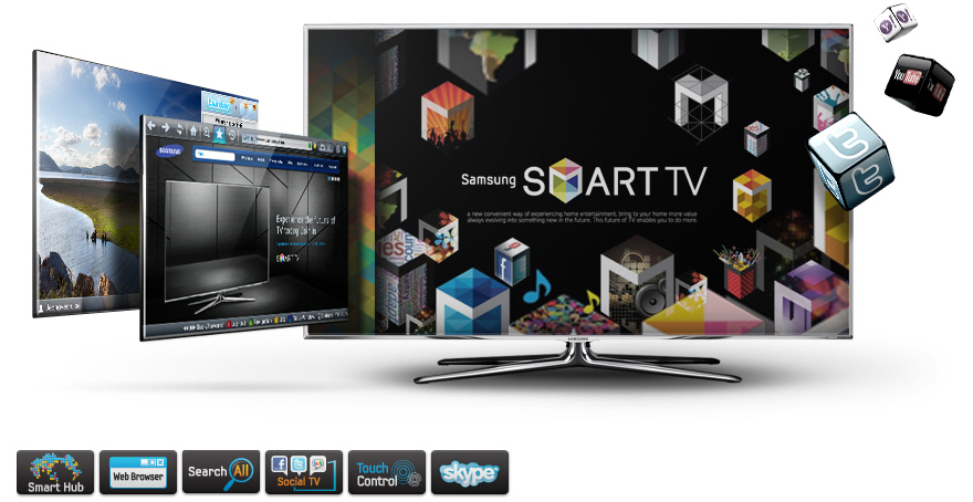 Инновационный сервис Samsung Smart Hub специально разработан для того, чтобы расширить возможности интеллектуальных телевизоров. Smart Hub откроет двери в целый мир новых впечатлений, которые изменят сам смысл выражения « смотреть телевизор ».