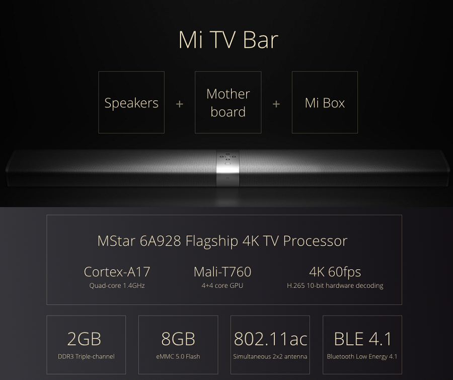 * Характеристики и комплектация Xiaomi Mi TV Bar могут изменяться производителем без уведомления. Интернет магазин не несет ответственности за частичное несоответствие характеристик, указанных на нашем сайте, с действительными. Просьба уточнять характеристики и комплектацию на официальном сайте производителя или в инструкции.
