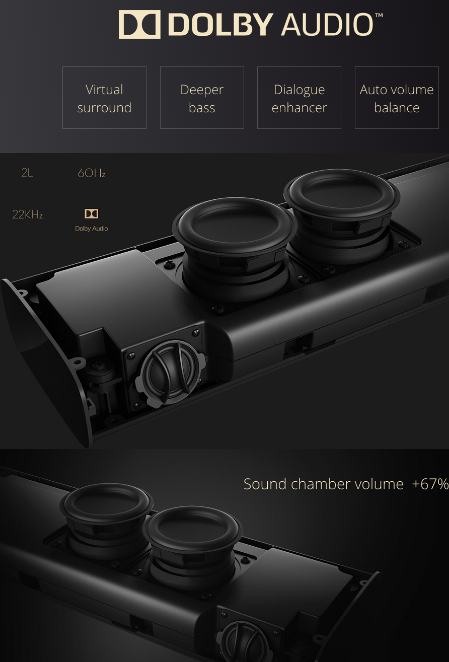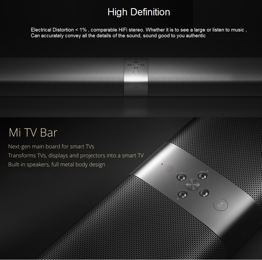В науке об акустике выделяют один, так называемый, закон «The bigger the better», суть которого состоит в том, что чем больше звуковой канал, тем лучше и легче извлечение звука. Учитывая тот факт, что ультратонкие телевизоры пользуются большим спросом, но их звуковой канал при этом становиться все меньше, в результате чего страдает качество звука, многие бренды телевизоров также предлагают отдельные независимые Soundbar, цена которых часто превышает стоимость самого телевизора. Soundbar Mi TV имеет HiFi качество звука, поэтому вы сможете наслаждаться отчетливым и выразительным звучанием каждого звука.